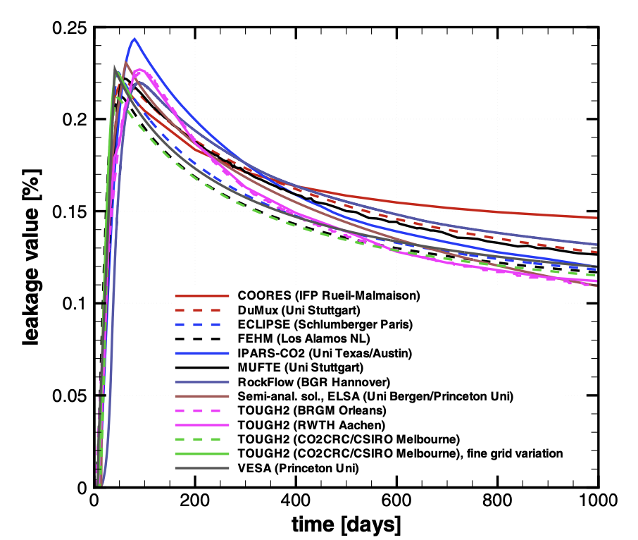 Fig. 8 Leakage rates [%] obtained with the simulators considered in (Class et al., 2009).