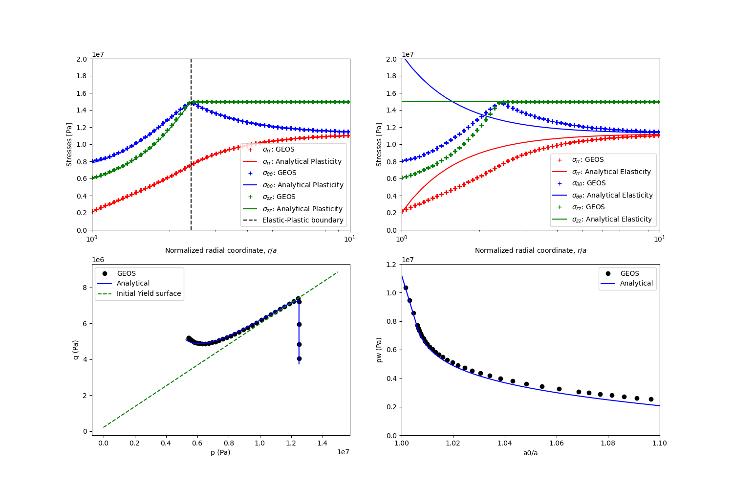The validation of GEOS results against analytical results is shown in the figure below: